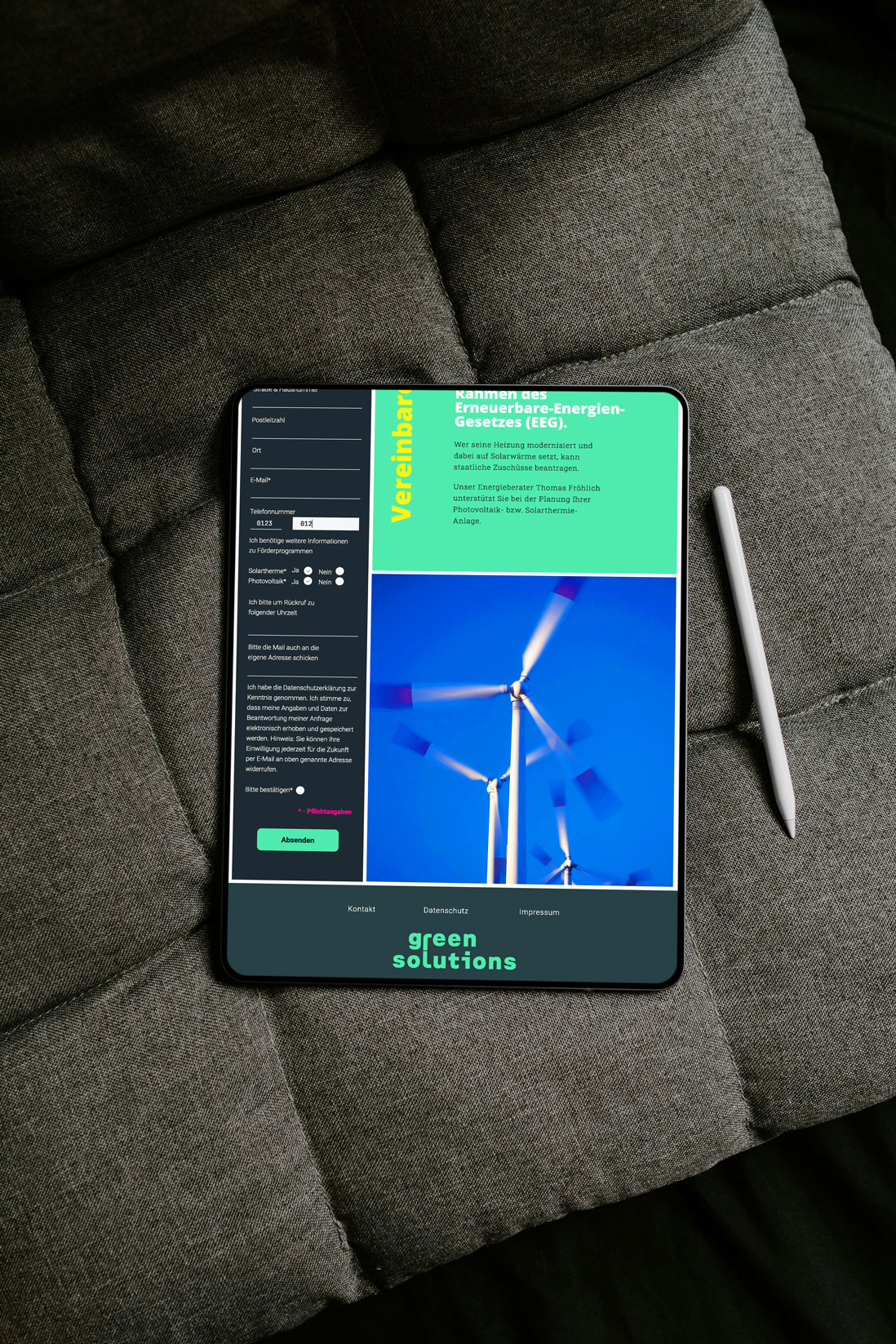 Die Greensolutions AG aus Nürnberg ist ein Anbieter von Ökostrom und Erneuerbaren Energiekonzepten. Die Firma wirbt um Neukunden für ihre Wind-, Wasser- und Sonnenenergie und berät beispielsweise beim Bau von Solaranlagen. Im Vordergrund der Werbebotschaft sollen die Begriffe Klimaschutz, Ökologie, Ressourcen schonen, Energie sparen und Nachhaltigkeit durch Energie aus sauberen Quellen stehen.